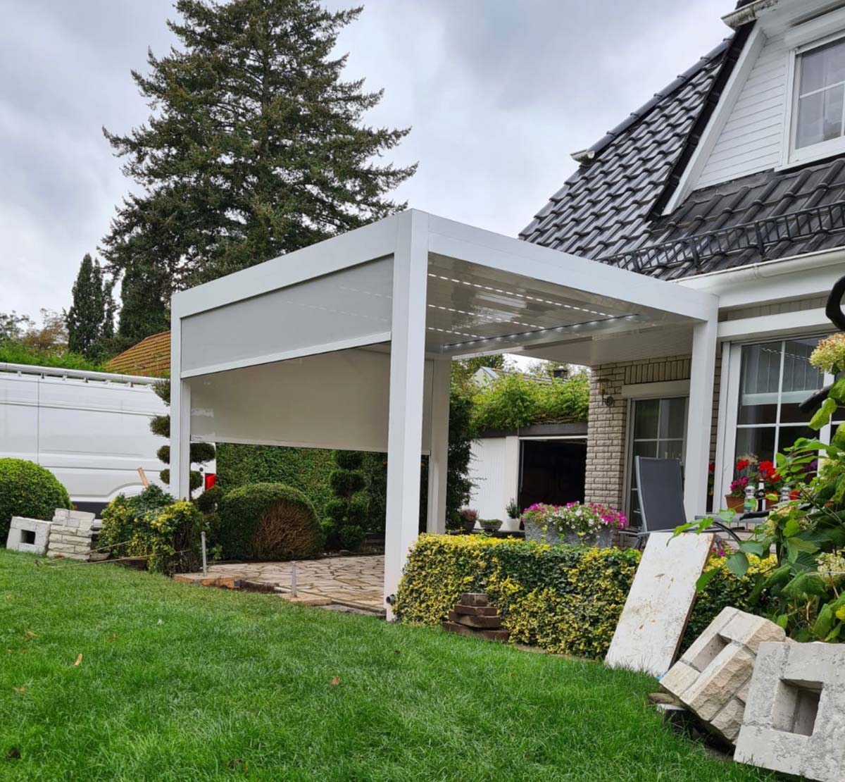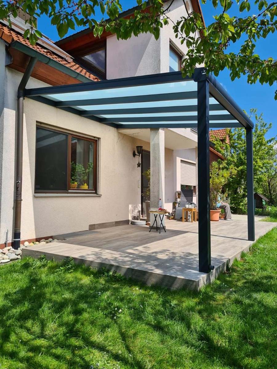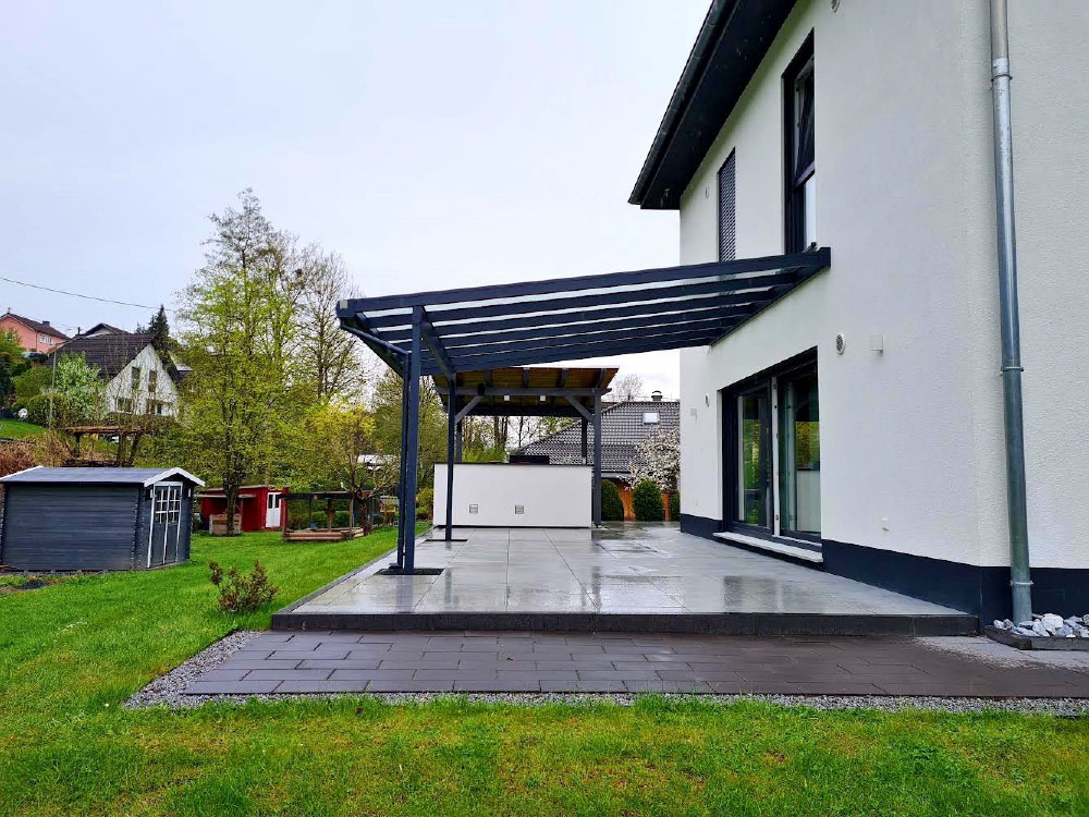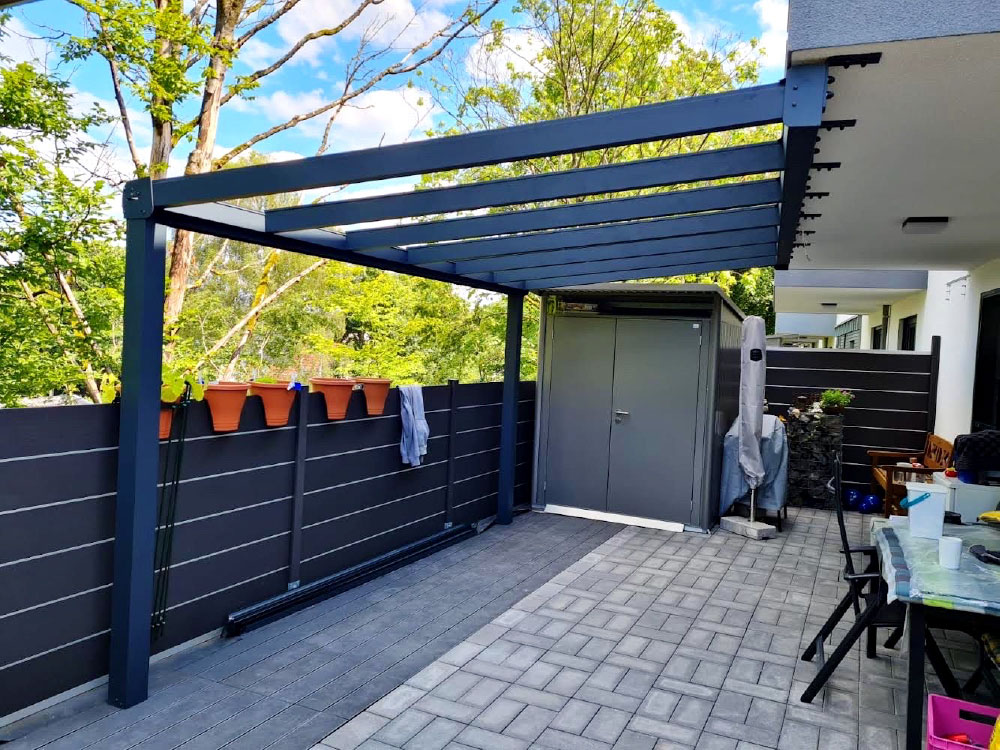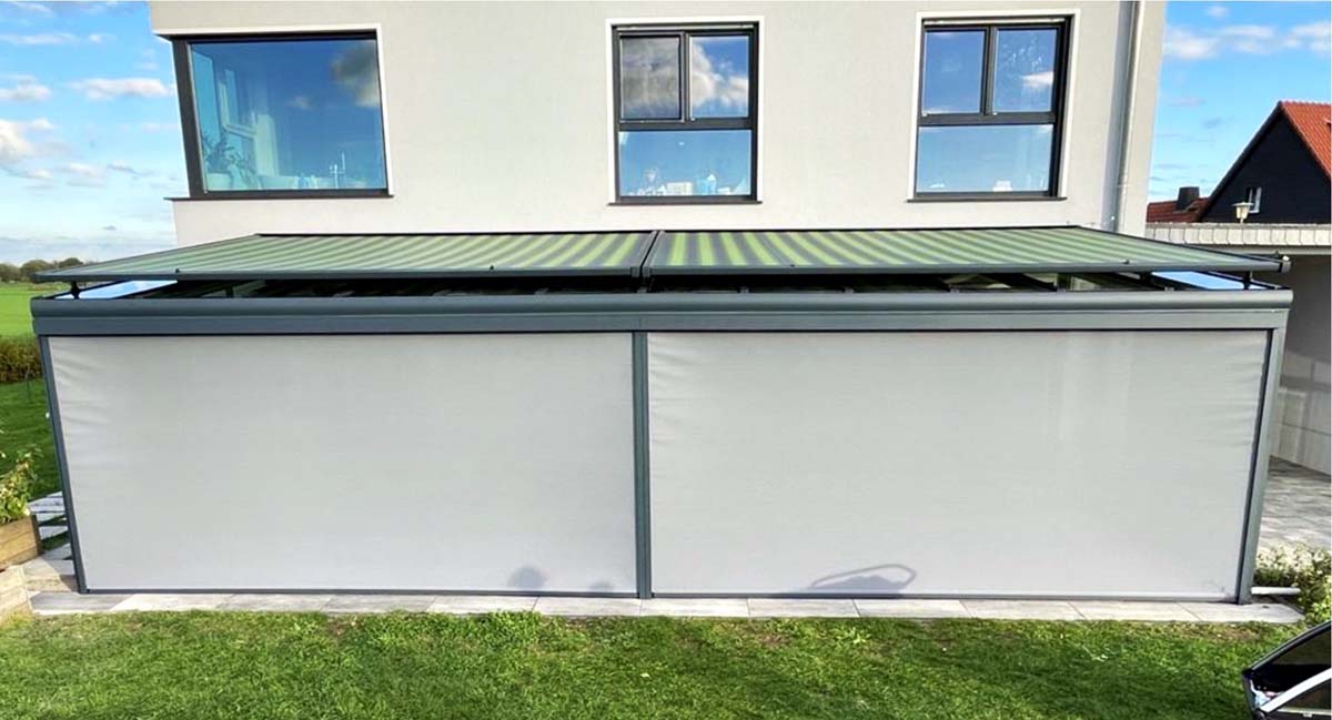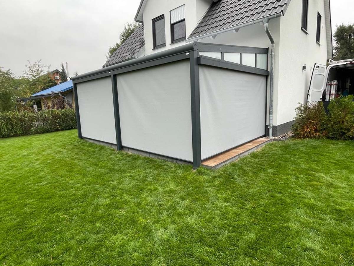 Unsere Überdachungslösungen werden nach Maß gefertigt und sind flexibel erweiterbar. Darüber hinaus profitieren Sie von Herstellergarantie, kurzen Lieferzeiten und unserer bundesweiten Montage.